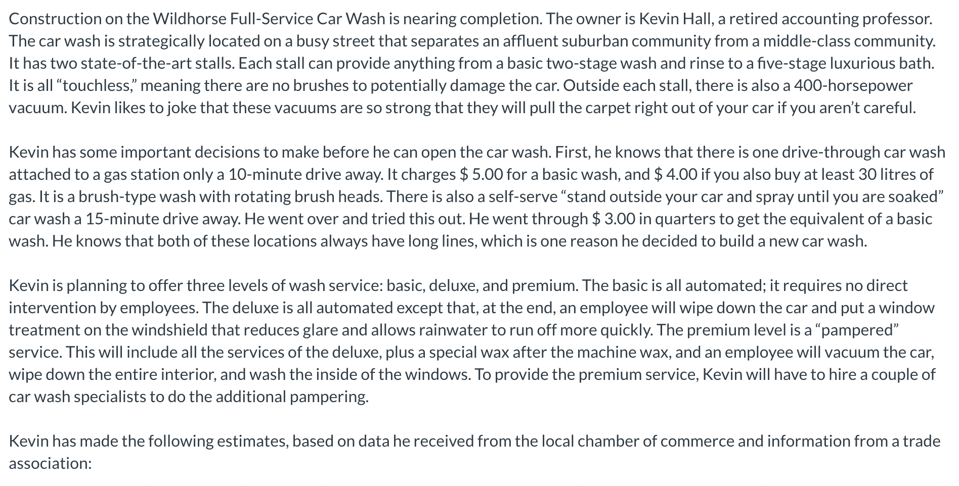 Solved Construction On The Wildhorse Full Service Car Wash Chegg Com